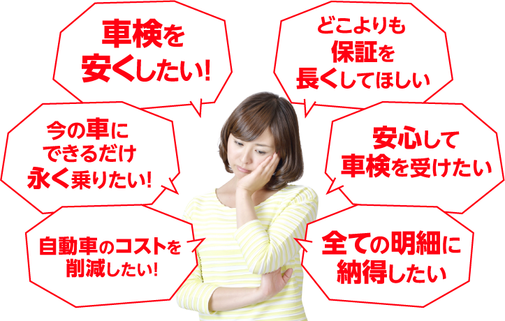 ※③は車検実施前の見積の為、車検当日分解を行い発見される不具合もありますので、あくまで分解を伴わない概算見積となります。見積でご来店いただいた当日、店舗の状況によりその場で車両確認が出来ない場合がありますので、事前にお電話頂くとスムーズにお見積が出来ます。